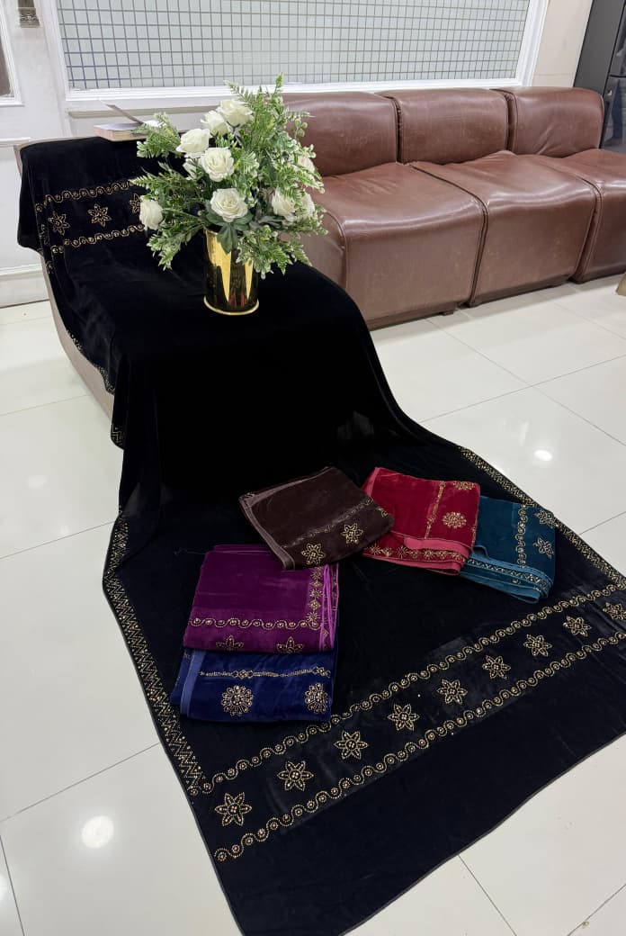 Add a refined touch to your ensemble with the Velvet Micro Palo Stone Shawl. Riwayat Store presents a luxurious velvet piece adorned with delicate stone embellishments for timeless elegance.